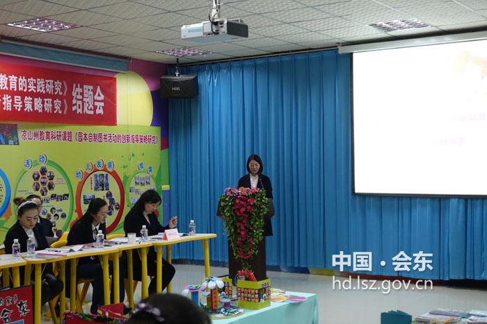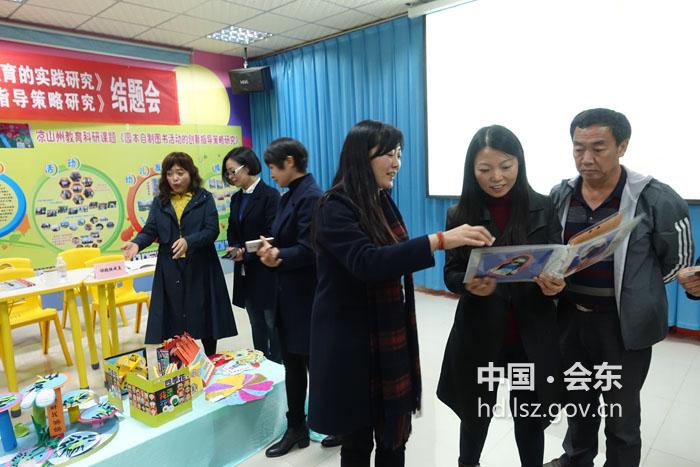 会东县幼儿园州级课题结题 暨会东中学省级课题开题会         校本课题研究是深化课题教学,促进教师专业成长的需要。我园在钻研教育教学的同时,更是潜心研究校本课题。2017年11月16日,凉山州教育副局长程志敏、凉山州教科所副所长巫明英等8人组成的专家组莅临我园指导我园“园本自制图书活动的创新指导策略研究”结题以及会东中学“边远山区薄弱高中青年教师校本培养长效机制的研究”开题。 会议上,我园园长解富芳致欢迎词。随后,会东中学课题组组长谢斌老师、课题组成员王家琳老师先后作“边远山区薄弱高中青年教师校本培养长效机制的研究”开题报告,阐述了该课题开展的背景、意义及研究方向等问题。紧接着,我园课题成员钱薇老师作课题“园本自制图书活动的创新指导策略研究”结题报告,刘秋梅老师针对我园课题“园本自制图书活动的创新指导策略研究”作专题发言,两位老师总结了该课题自开题以来各阶段的工作、研究措施以及研究成果。 专家组先后对会东中学课题提出宝贵的意见及建议,为后续研究指明方向。同时也对我园课题给予充分肯定和高度评价。凉山州教科所副所长巫明英对我园课题“园本自制图书活动的创新指导策略研究”作结题鉴定,充分肯定了该课题的研究内容、研究方法以及达成的预期研究任务,同意该课题结题,并望我园继续深化研究,对研究成果进行提炼使之更加完善,能在学前教育阶段推广应用! 会议最后,凉山州教育局副局长程志敏对此次会议作了总结发言。她充分肯定了校本课题科研的重要性,并望我园和会东中学在做好常规教育之余,能坚持做好科研课题,深化教育教学。