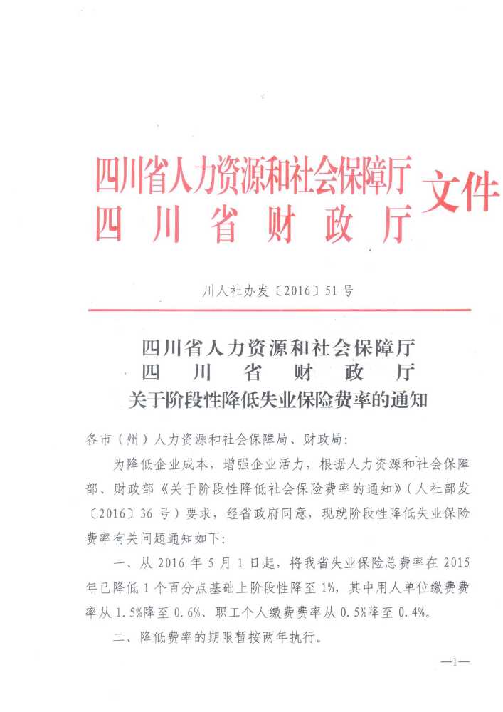 省人社厅 省财政厅 关于阶段性降低失业保险费率的通知