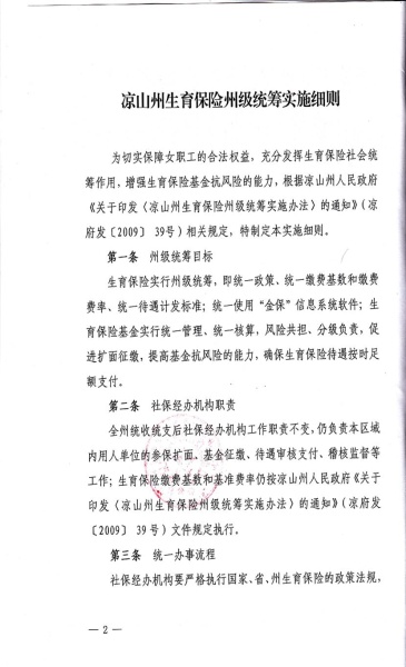 凉政办函[2014]321号 关于印发凉山州生育保险州级统筹实施细则的通知